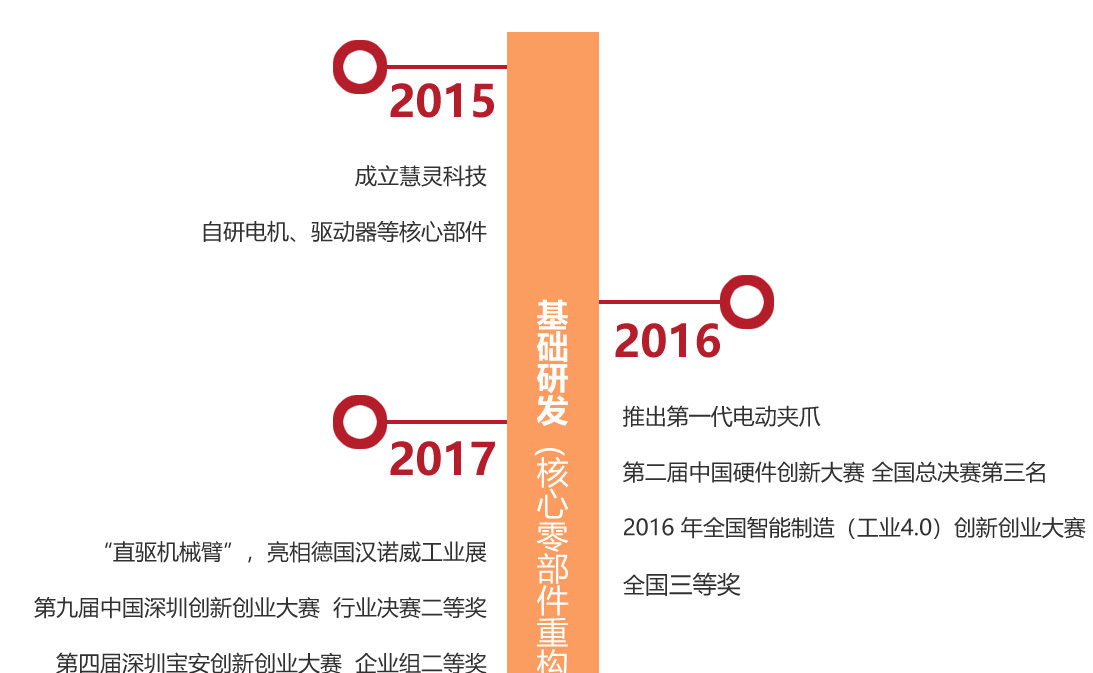 公司簡(jiǎn)介 慧靈科技(HITBOT)成立于2015年,小米生態(tài)鏈企業(yè),國(guó)家級(jí)專精特新“小巨人”企業(yè),致力于以軟件圖形化、硬件模塊化的方式為生命科學(xué)、3C以及新零售等領(lǐng)域提供機(jī)械臂、末端執(zhí)行器、操作系統(tǒng)等軟硬件產(chǎn)品和面向行業(yè)的具身智能基礎(chǔ)設(shè)施解決方案。作為直驅(qū)機(jī)械臂的開(kāi)創(chuàng)者、電動(dòng)夾爪行業(yè)的領(lǐng)頭羊、茶飲自動(dòng)化的推動(dòng)者,從通用型機(jī)器人產(chǎn)品到行業(yè)專用軟硬件,慧靈科技持續(xù)引領(lǐng)行業(yè)創(chuàng)新發(fā)展,為客戶提供面向場(chǎng)景的具身智能軟硬件基礎(chǔ)設(shè)施,降低具身智能應(yīng)用門檻,讓AI賦能千行百業(yè)。憑借多個(gè)現(xiàn)象級(jí)產(chǎn)品,服務(wù)了小米、華為、松下、歐萊雅、邁瑞等數(shù)十個(gè)國(guó)家的上千個(gè)客戶。先后獲得極星資本、澤厚資本、唯嘉資本、賽智創(chuàng)投、順為資本、創(chuàng)世伙伴、萬(wàn)物(博裕)、魔量資本、毅園資本、道合資本等多輪數(shù)億元投資。 1 年成立 0 產(chǎn)品銷量連續(xù)三年穩(wěn)居行業(yè)第一 0 + 發(fā)明專利 0 行業(yè)內(nèi)第一個(gè)使用直驅(qū)技術(shù)的企業(yè) 全球唯一 一家同時(shí)具有末端執(zhí)行器、全系列電動(dòng)執(zhí)行單元、四、六軸協(xié)作機(jī)械臂等全矩陣產(chǎn)品及自動(dòng)化操作系統(tǒng),且能給客戶提供全套解決方案的機(jī)器人公司。 播放視頻 慧靈科技(深圳) 慧靈科技(昆山) 慧靈科技(江蘇) 公司榮譽(yù) 企業(yè)榮譽(yù) 國(guó)家級(jí)小巨人企業(yè) 國(guó)家級(jí)高新技術(shù)企業(yè) 專精特新企業(yè) 中國(guó)機(jī)器人產(chǎn)業(yè)鏈50強(qiáng)公司 技能等級(jí)認(rèn)定聯(lián)合考核站 企業(yè)知識(shí)產(chǎn)權(quán) 授權(quán)專利367項(xiàng) 產(chǎn)品研發(fā) 自主研發(fā)、技術(shù)創(chuàng)新擁有核心關(guān)鍵技術(shù) 發(fā)展歷程