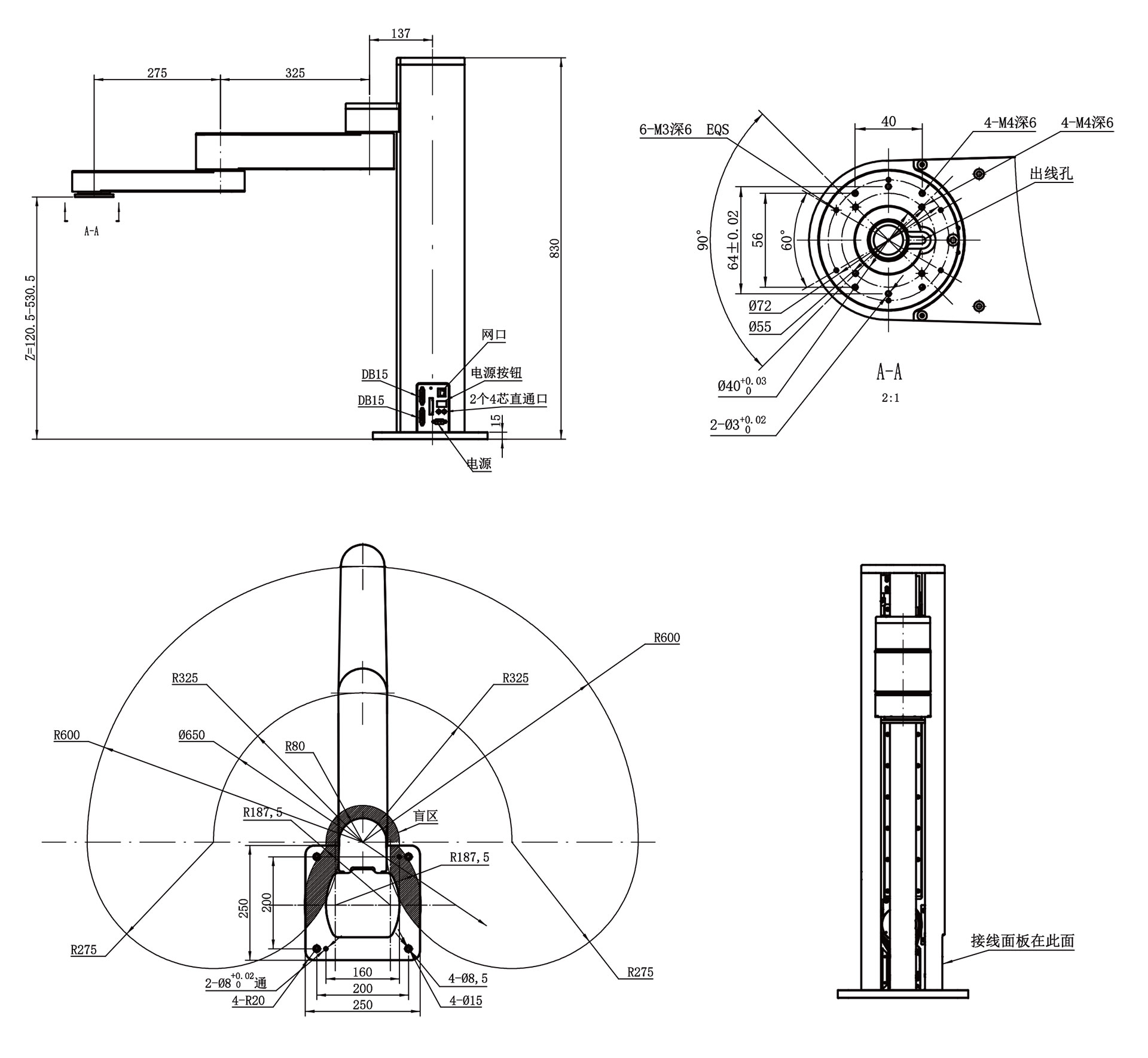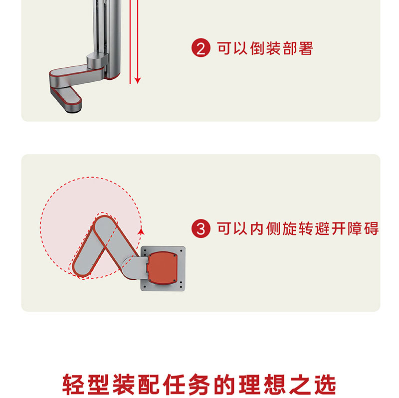 | 電器預(yù)留接口 | 標(biāo)配:插座面板直通小臂下蓋板2根4*23awg(無屏蔽層)線 可選配:插座面板直通法蘭2根φ4氣管 |