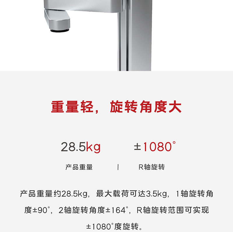 | R軸旋轉(zhuǎn)范圍 | ±1080°無機(jī)械限位 / ±170°有機(jī)械限位 |