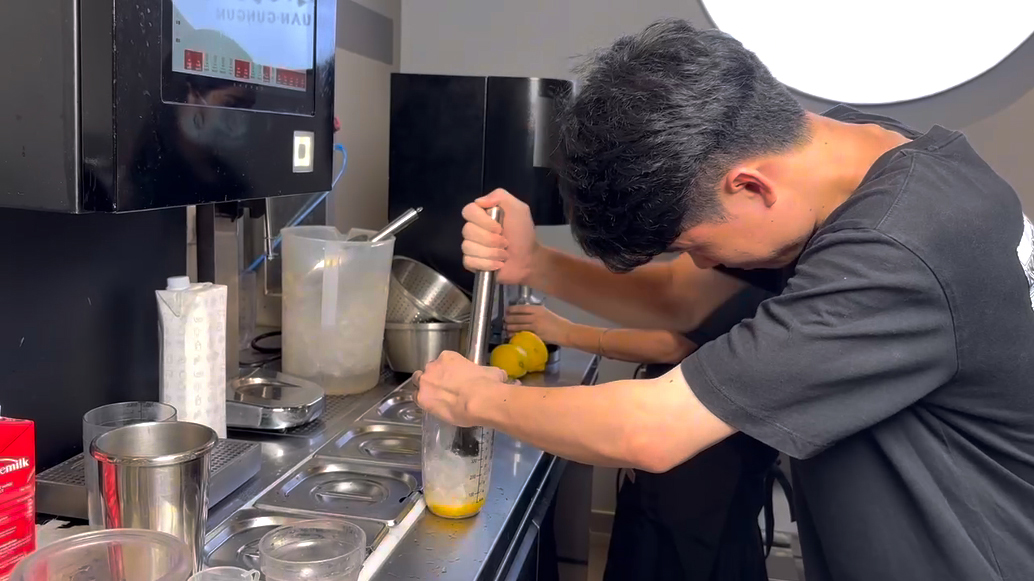 單杯出品時(shí),人工根據(jù)檸檬品質(zhì)靈活調(diào)整捯捶次數(shù),效率更高。但在出品杯量大的情況下,機(jī)器有效率優(yōu)勢。