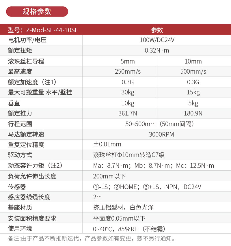 | 滾珠絲杠導(dǎo)程 | 5mm | 10mm | |