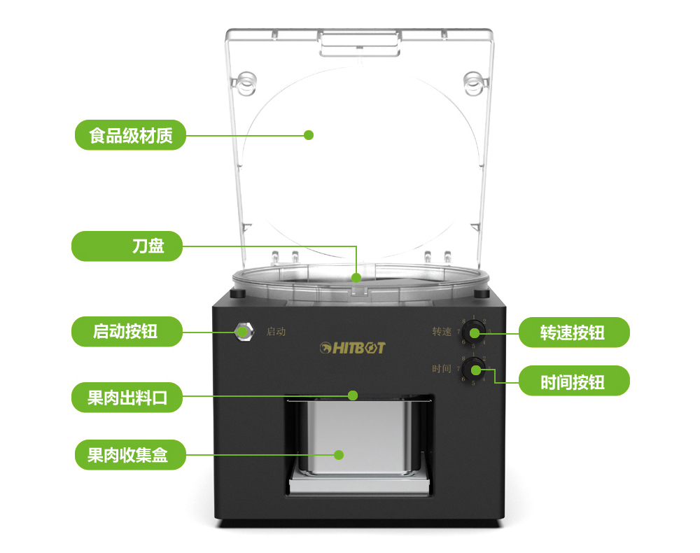 慧靈HITBOT葡萄去皮機重量為13 kg,尺寸為400*355*302mm,設計緊湊,占地面積小,方便在生產場所內靈活擺放。設備采用食品級加厚材質,穩固耐用,防水、防腐蝕、防氧化,經久耐用,是果茶生產的可靠助手。