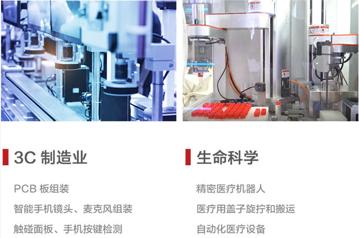 旋轉(zhuǎn)電動夾爪 旋轉(zhuǎn)電動夾爪 定位精度高,可長時間連續(xù)完成高精度要求的工作;可視化界面簡單易學,擁有坐標定位、離線編程等功能;種類齊全,覆蓋各行業(yè)差異性應用。 定位精度高,可長時間連續(xù)完成高精度要求的工作;可視化界面簡單易學,擁有坐標定位、離線編程等功能;種類齊全,覆蓋各行業(yè)差異性應用。 旋轉(zhuǎn)電動夾爪 型號:Z-ERG-20 總行程:20mm 夾持力: 10N~35N 重復定位精度:±0.2mm 單向行程:0.6s 推薦夾持重量:≤0.4kg 行程調(diào)節(jié):可調(diào) 夾持力:可調(diào) 查看詳情 型號:Z-ERG-20C 總行程:20mm 夾持力: 10~35N 重復定位精度:±0.2mm 單向行程:0.8s 推薦夾持重量:≤0.4kg 行程調(diào)節(jié):可調(diào) 夾持力:可調(diào) 查看詳情 型號:Z-ERG-20-100 總行程:20mm 夾持力: 10N~35N 重復定位精度:±0.2mm 單向行程:0.6s 推薦夾持重量:≤0.4kg 行程調(diào)節(jié):可調(diào) 夾持力:可調(diào) 查看詳情 型號:Z-ERG-20-100S 總行程:20mm 夾持力: 30~100N 重復定位精度:±0.2mm 單向行程:0.3s 推薦夾持重量:≤1kg 行程調(diào)節(jié):可調(diào) 夾持力:可調(diào) 查看詳情 旋轉(zhuǎn)電動夾爪 Z-ERG-20 總行程:20mm夾持力:10-35N旋轉(zhuǎn)最大扭矩: 0.3N.m旋轉(zhuǎn)最大速度: 240RPM Z-ERG-20C 總行程:20mm夾持力:10-35N旋轉(zhuǎn)最大扭矩: 0.3N.m旋轉(zhuǎn)最大速度: 180RPM Z-ERG-20-100 總行程:20mm夾持力:30-100N最大扭矩: 1.5N.m旋轉(zhuǎn)最大速度: 180RPM Z-ERG-20-100S 總行程:20mm夾持力:30-100N最大扭矩: 1.5N.m旋轉(zhuǎn)最大速度: 180RPM 適合領(lǐng)域