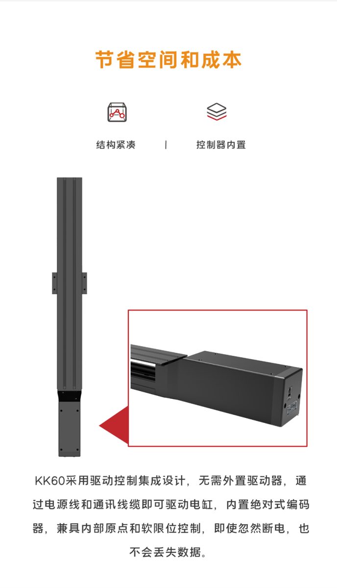 智能電缸Z-Mod-KK-60-10SE,驅控一體,高度集成,使用簡單的智能電缸,集成化設計,讓其更加省空間,有斷電保護功能,即使斷電也不會清除數據!