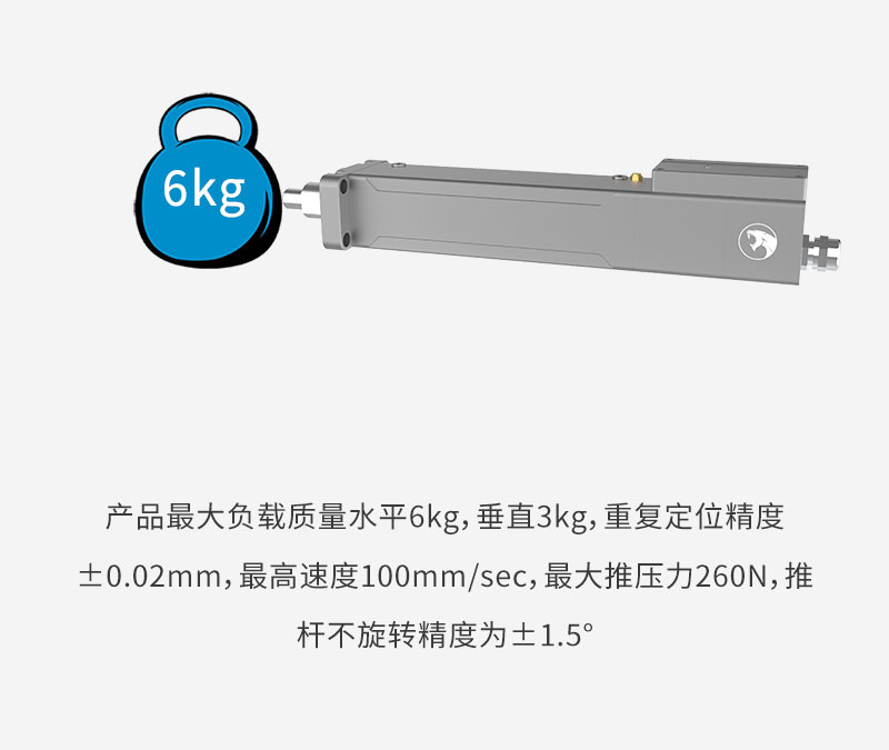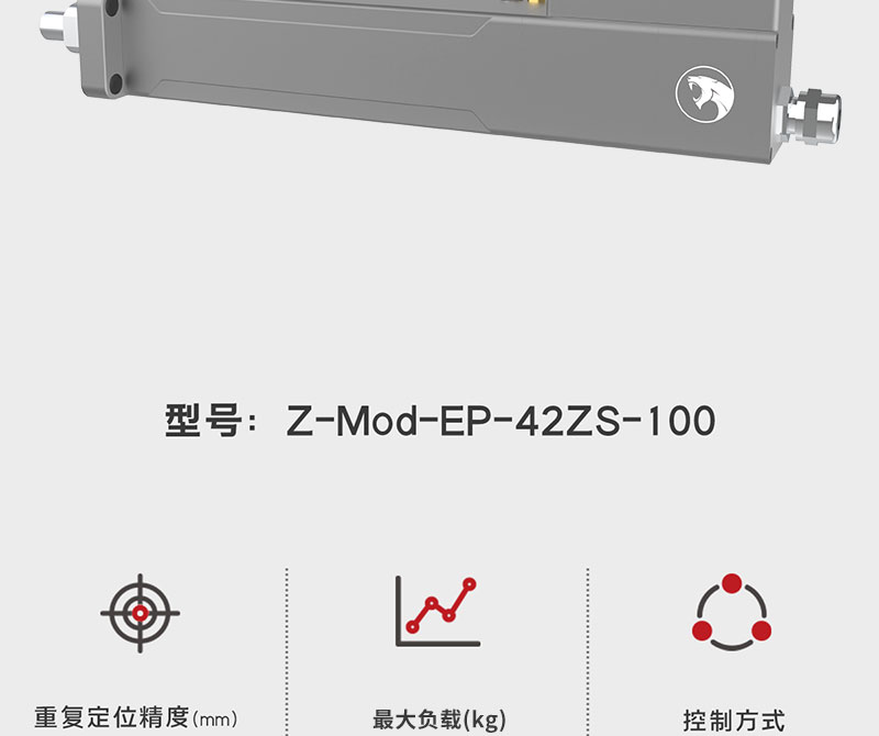 2023年1月6日 Lu, DongWu 智能電缸 0 Z-Mod-EP-42ZS-100 首頁 / 智能電缸 / Z-Mod-EP-42ZS-100 播放視頻 體積小、推力大 、高精度、性價比高驅(qū)動內(nèi)置,簡單易操作末端抗彎能力強力、位置、速度都可以通過Modbus精準(zhǔn)控制長壽命:千萬次循環(huán),超越氣缸控制方式:485、I/O、脈沖 下載3D模型 下載產(chǎn)品手冊 播放視頻 體積小、推力大 、高精度、性價比高驅(qū)動內(nèi)置,簡單易操作末端抗彎能力強力、位置、速度都可以通過Modbus精準(zhǔn)控制長壽命:千萬次循環(huán),超越氣缸控制方式:485、I/O、脈沖 下載3D模型 下載產(chǎn)品手冊 產(chǎn)品描述 資料下載 產(chǎn)品描述 Z-Mod-EP-42ZS-100 核心參數(shù) 2mm 260N? 導(dǎo)程 最大連續(xù)推壓力 100mm ? ? ? ? ? ? ? ? ? ? ? ? ±0.02mm 行程 ? ? ? ? ? ? ? ? ? ? ? ? ? ? ? ? ? ? ? ? ? ? 重復(fù)定位精度 *線框尺寸圖 規(guī)格參數(shù) 詳情 行程 100mm 導(dǎo)程 2mm 最大速度 100mm/s 最大連續(xù)推壓力 260N 最大負(fù)載質(zhì)量 水平:6kg / 垂直:3kg 重復(fù)定位精度 ±0.02mm 力控精度 ±10% 推桿不旋轉(zhuǎn)精度 ±1.5° 推桿末端允許力矩 二指平動 重量 1.5N·m 整機重量 1.5kg 尺寸規(guī)格 296*42*65mm 控制方式 I/O控制、485總線控制、脈沖控制(脈沖+方向) 工作電壓 DC24V±10% 額定電流 2A 峰值電流 6A 防護等級 IP40 使用環(huán)境 0~40℃,85% RH以下(不結(jié)霜) 資料下載 點擊下載產(chǎn)品手冊 點擊下載3D圖 點擊下載運動范圍圖 Z-Mod-EP-42ZS-100 核心參數(shù) 產(chǎn)品詳細(xì)參數(shù) 行程 100mm 導(dǎo)程 2mm 最大速度 100mm/s 最大連續(xù)推壓力 260N 最大負(fù)載質(zhì)量 水平:6kg / 垂直:3kg 重復(fù)定位精度 ±0.02mm 力控精度 ±10% 推桿不旋轉(zhuǎn)精度 ±1.5° 推桿末端允許力矩 二指平動 重量 1.5N·m 整機重量 1.5kg 尺寸規(guī)格 296*42*65mm 控制方式 I/O控制、485總線控制、脈沖控制(脈沖+方向) 工作電壓 DC24V±10% 額定電流 2A 峰值電流 6A 防護等級 IP40 使用環(huán)境 0~40℃,85% RH以下(不結(jié)霜) 產(chǎn)品詳情 相關(guān)產(chǎn)品