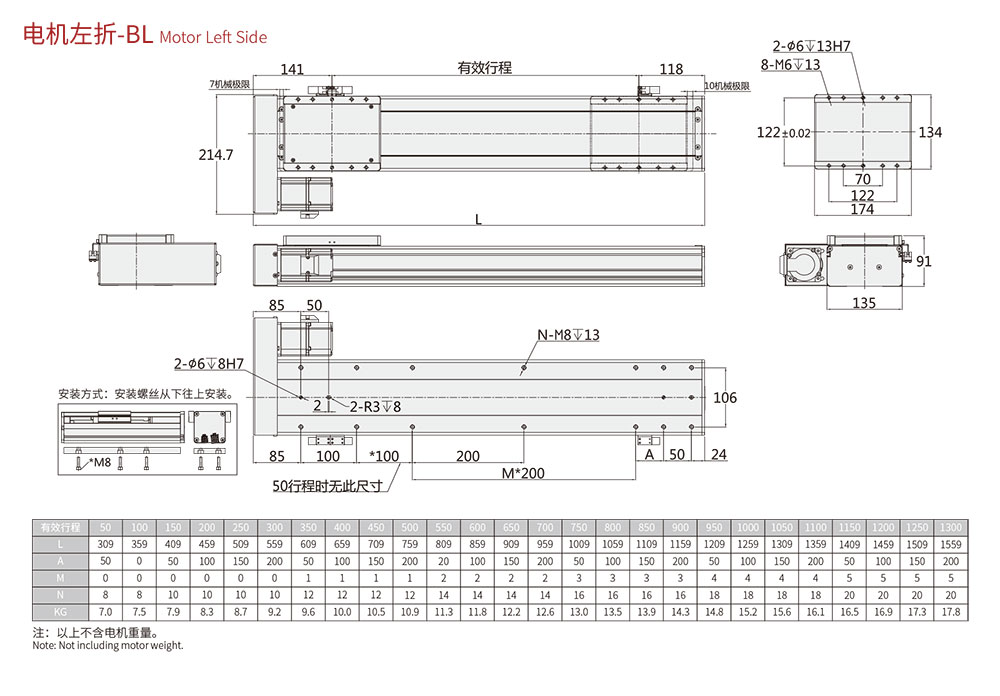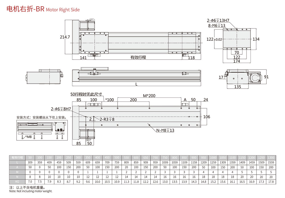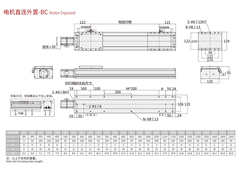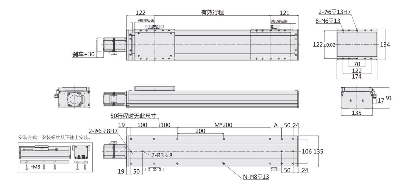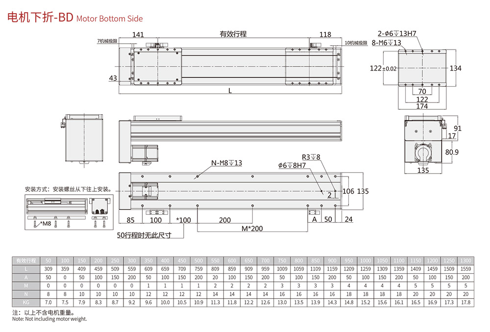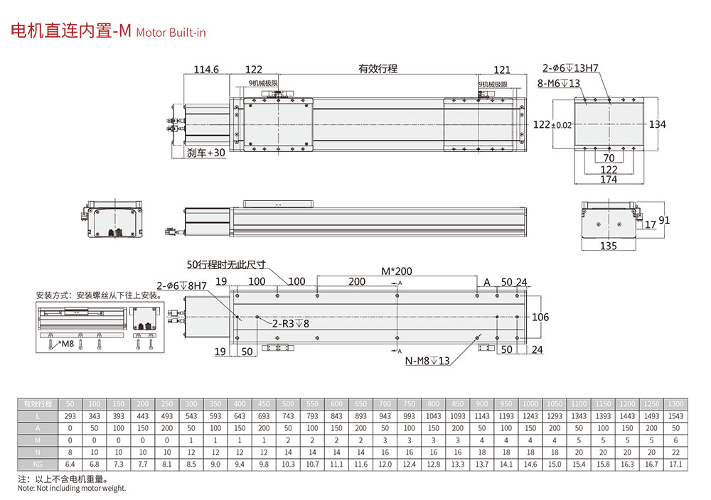 行程范圍 Range of travel(mm) 50-1100MM/50行程遞增