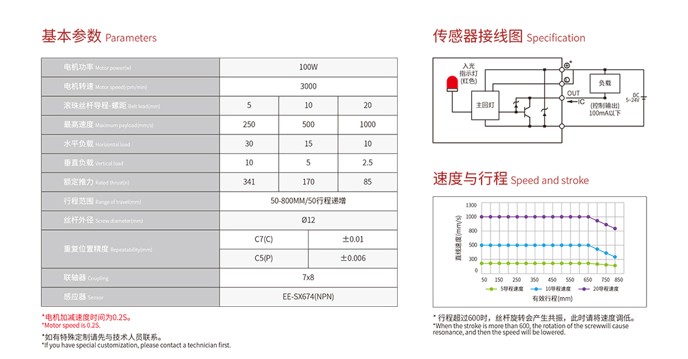 2023年5月19日 Lu, DongWu 智能電缸 0 Z-Mod-HTH5 首頁 / 智能電缸 / Z-Mod-HTH5 電機功率:100W絲桿外徑:12mm電機轉速:3000(rpm/min)重復定位精度:±0.006mm行程范圍:50-800mm(50mm行程遞增)? 下載3D模型 下載產品手冊 電機功率:100W絲桿外徑:12mm電機轉速:3000(rpm/min)重復定位精度:±0.006mm行程范圍:50-800mm(50mm行程遞增)? 下載3D模型 下載產品手冊 產品描述 資料下載 產品描述 Z-Mod-HTH5 核心參數 100W ?3000RPM 電機功率 ? 電機轉速 12mm ? ? ? 50~800mm ? 絲杠外徑 ? ? ? ? ? ?行程范圍 *線框尺寸圖 規格參數 型號性能 電機功率 Motor power(w) 100W 電機轉速 Motor speed(rpm/min) 3000 滾珠絲桿導程-螺距 Belt lead(mm) 5 10 20 最高速度 Maximum payload(mm/s) 250 500 1000 水平負載 Horizontal load 30 15 10 垂直負載 Vertical load 10 5 1.5 額定推力 Rated thrust(n) 341 170 85 行程范圍 Range of travel(mm) 50-800MM/50行程遞增 絲桿外徑 Screw diameter(mm) ?12 重復位置精度 Repeatability(mm) C7(C) ±0.01 C5(P) ±0.006 聯軸器 Coupling 7×8 感應器 Sensor EE-SX674(NPN) 資料下載 點擊下載產品手冊 點擊下載3D圖 點擊下載運動范圍圖 Z-Mod-HTH5 核心參數 規格參數 型號性能 電機功率 Motor power(w) 100W 電機轉速 Motor speed(rpm/min) 3000 滾珠絲桿導程-螺距 Belt lead(mm) 5 10 20 最高速度 Maximum payload(mm/s) 250 500 1000 水平負載 Horizontal load 30 15 10 垂直負載 Vertical load 10 5 1.5 額定推力 Rated thrust(n) 341 170 85 行程范圍 Range of travel(mm) 50-800MM/50行程遞增 絲桿外徑 Screw diameter(mm) ?12 重復位置精度 Repeatability(mm) C7(C) ±0.01 C5(P) ±0.006 聯軸器 Coupling 7×8 感應器 Sensor EE-SX674(NPN) 產品詳情 相關產品