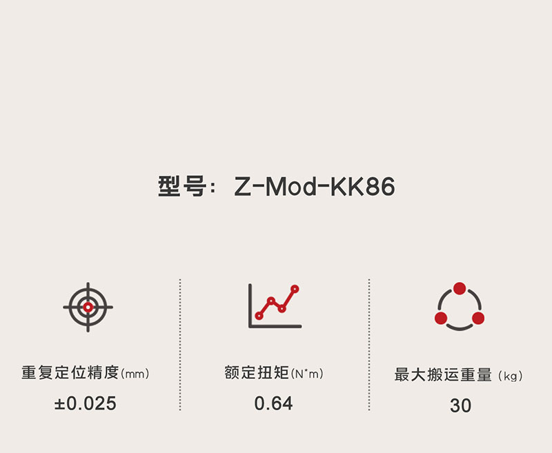 2022年1月25日 pruce 智能電缸 0 Z-Mod-KK-86-20SE 首頁 / 智能電缸 / Z-Mod-KK-86-20SE 電機功率/電壓:200W/DC24V 額定扭矩:0.64N.m 重復定位精度:±0.025mm 行程范圍:210-610mm(100mm間隔) 810mm 馬達額定轉速: 3000RPM 下載3D模型 下載產品手冊 電機功率/電壓:200W/DC24V 額定扭矩:0.64N.m 重復定位精度:±0.025mm 行程范圍:210-610mm(100mm間隔) 810mm 馬達額定轉速: 3000RPM 下載3D模型 下載產品手冊 產品描述 資料下載 產品描述 Z-Mod-KK-86-20SE 核心參數 200W 0.64N.m DC伺服電機功率 額定扭矩 210~710mm 3000PRM 行程范圍 馬達額定轉速 *線框尺寸圖 規格參數 型號性能 電機功率/電壓 200W/DC24V 額定扭矩( N.m ) 0.64 滾珠絲杠導程(mm) 10 20 最高速度(mm/sec) 500 1000 額定加速 0.3G 0.3G 最大可搬重量(水平/壁掛)(kg) 30 15 垂直 12 6 額定推力(N) 361.7 180.9 行程范圍 210-810mm ( 100mm 間隔) 馬達額定轉速(RPM) 3000 注: 1G=9800mm/sec2 通用規格 重復定位精度 ±0.025mm 驅動方式 滾珠絲杠φ15mm轉造C7級 動態容許力矩(注1) Ma:622N.m, Mb:622N.m, Mc:1507N.m 負荷允許伸出長度 / 傳感器 ①-LS, ②HOME, ③+LS, NPN, 24VDC 感應器線纜長度 2m 基座材質 鑄鋼,黑色 安裝面積精度要求 平面度0.05mm以下 使用環境 0-40℃, 85%RH(不結霜) 注1:行走壽命為10000km時的數值 尺寸圖代號說明 ? 質量; 單位:mm 軌道長度L 340 440 540 640 740 940 最大行程 210 310 410 510 610 710 H 25 50 50 50 50 50 ?M 2 2 ?2 ?4 3 6 N ?2 ?2 3 4 5 6 ?質量(kg) 7.85 9.15 10.35 11.65 12.95 14.35 資料下載 點擊下載產品手冊 點擊下載3D圖 點擊下載運動范圍圖 Z-Mod-KK-86-20SE 核心參數 產品詳細參數 產品型號Z-Mod-KK-86-20SE額定扭矩(N·m)0.64滾珠絲杠導程(mm)1020最高速度(mm/sec)5001000額定加速度(※1)0.3G0.3G最大可搬重量 水平/壁掛(kg)3015垂直126額定推力(N)361.7180.9行程范圍210-810mm(100mm間隔)馬達額定轉速(RPM)3000注:1G=9800mm/sec2重復定位精度±0.025mm驅動方式滾珠絲杠Φ15mm轉造C7級動態容許力矩(注1)Ma:622N·m,Mb:622N·m,Mc:1507N·m負荷允許伸出長度/傳感器①-LS,②HOME,③+LS ,NPN, 24V DC感應器線纜長度2m基座材質鑄鋼,黑色安裝面積精度要求平面度0.05mm以下使用環境0-40°C, 85%RH](不結霜)注1:行走壽命為10000km時的數值 規格參數 型號性能電機功率/電壓200W/DC24V額定扭矩( N.m )0.64滾珠絲杠導程(mm)1020最高速度(mm/sec)5001000額定加速0.3G0.3G最大可搬重量(水平/壁掛)(kg)3015垂直126額定推力(N)361.7180.9行程范圍210-810mm ( 100mm間隔)馬達額定轉速(RPM)3000注: 1G=9800mm/sec2通用規格重復定位精度±0.025mm驅動方式滾珠絲杠φ15mm轉造C7級動態容許力矩(注1)Ma:622N.m, Mb:622N.m, Mc:1507N.m負荷允許伸出長度/傳感器①-LS, ②HOME, ③+LS, NPN, 24VDC感應器線纜長度2m基座材質鑄鋼,黑色安裝面積精度要求平面度0.05mm以下使用環境0-40℃, 85%RH(無結霜)注1:行走壽命為10000km時的數值尺寸圖代號說明 ? 質量; 單位:mm軌道長度L340440540640740940最大行程210310410510610710H255050505050?M22?2?436N?2?23456?質量(kg)7.859.1510.3511.6512.9514.35 產品詳情 相關產品